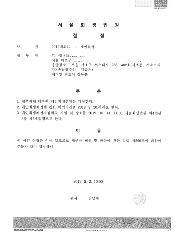 서울회생법원 (2019개회) 개시결정문 페이지 정보 작성자 김동윤 변호사 작성일19-08-07 09:27 조회6,856회 댓글0건 관련링크 이전글 다음글 목록 본문 서울회생법원 (2019개회) 개시결정문 댓글목록 등록된 댓글이 없습니다. 이전글 다음글 목록