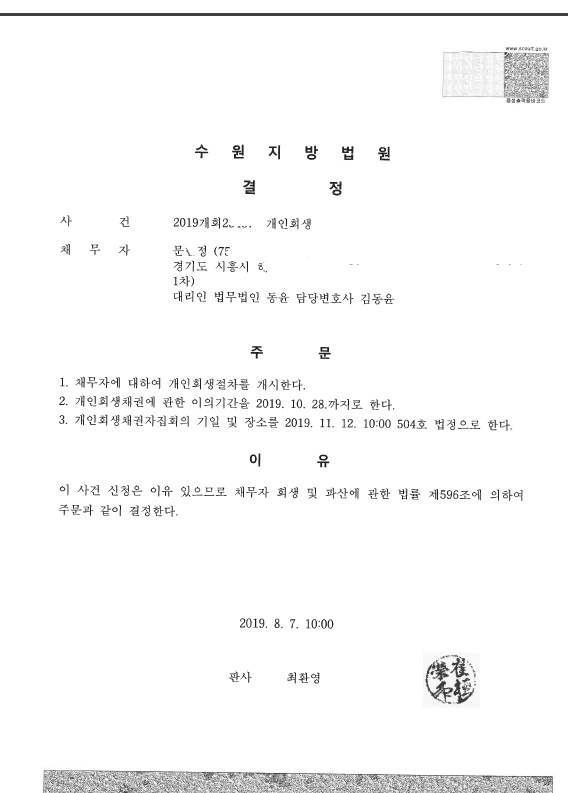 수원지방법원 (2019개회) 개시결정문 페이지 정보 작성자 김동윤 변호사 작성일19-08-12 14:14 조회7,194회 댓글0건 관련링크 이전글 다음글 목록 본문 수원지방법원 (2019개회) 개시결정문 댓글목록 등록된 댓글이 없습니다. 이전글 다음글 목록