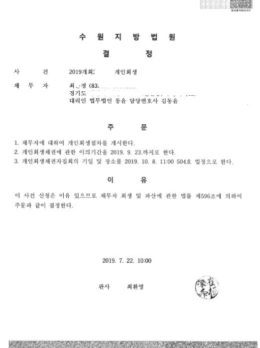 수원지방법원 (2019개회) 개시결정문 페이지 정보 작성자 김동윤 변호사 작성일19-07-26 09:22 조회7,158회 댓글0건 관련링크 이전글 다음글 목록 본문 수원지방법원 (2019개회) 개시결정문 댓글목록 등록된 댓글이 없습니다. 이전글 다음글 목록