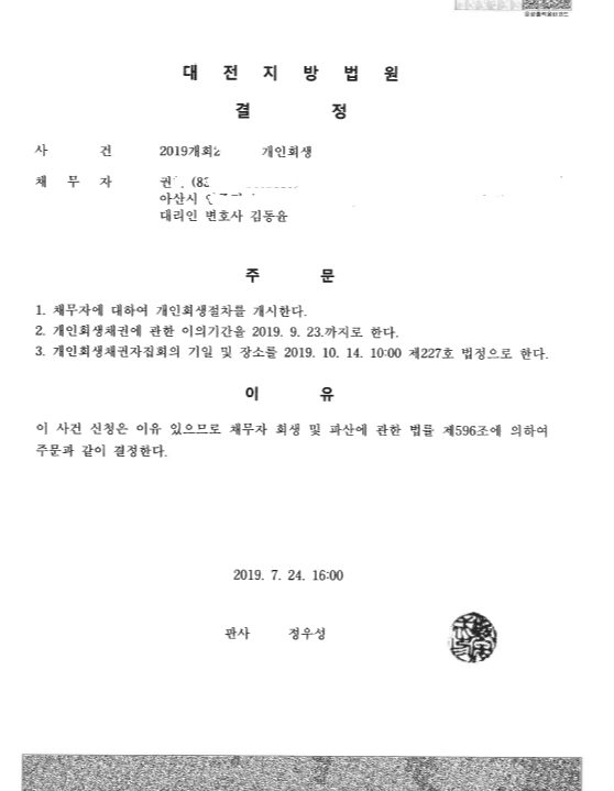 대전지방법원 (2019개회) 개시결정문 페이지 정보 작성자 김동윤 변호사 작성일19-07-29 14:01 조회7,659회 댓글0건 관련링크 이전글 다음글 목록 본문 대전지방법원 (2019개회) 개시결정문 댓글목록 등록된 댓글이 없습니다. 이전글 다음글 목록