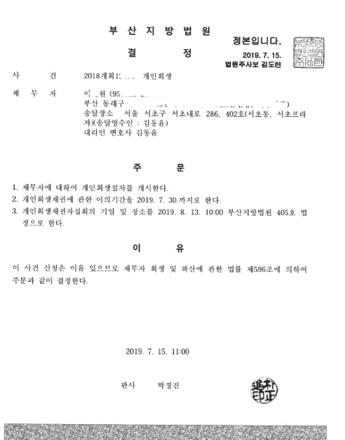 부산지방법원 (2018개회) 개시결정문 페이지 정보 작성자 김동윤 변호사 작성일19-07-19 14:17 조회7,445회 댓글0건 관련링크 이전글 다음글 목록 본문 부산지방법원 (2018개회) 개시결정문 댓글목록 등록된 댓글이 없습니다. 이전글 다음글 목록