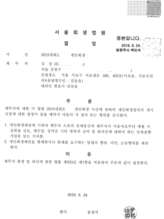 서울회생법원 (2019개회) 금지결정문 페이지 정보 작성자 김동윤 변호사 작성일19-06-27 15:10 조회7,045회 댓글0건 관련링크 이전글 다음글 목록 본문 서울회생법원 (2019개회) 금지결정문 댓글목록 등록된 댓글이 없습니다. 이전글 다음글 목록