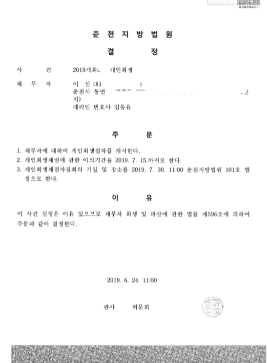 춘천지방법원 (2019개회) 개시결정문 페이지 정보 작성자 김동윤 변호사 작성일19-06-27 15:12 조회7,149회 댓글0건 관련링크 이전글 다음글 목록 본문 춘천지방법원 (2019개회) 개시결정문 댓글목록 등록된 댓글이 없습니다. 이전글 다음글 목록