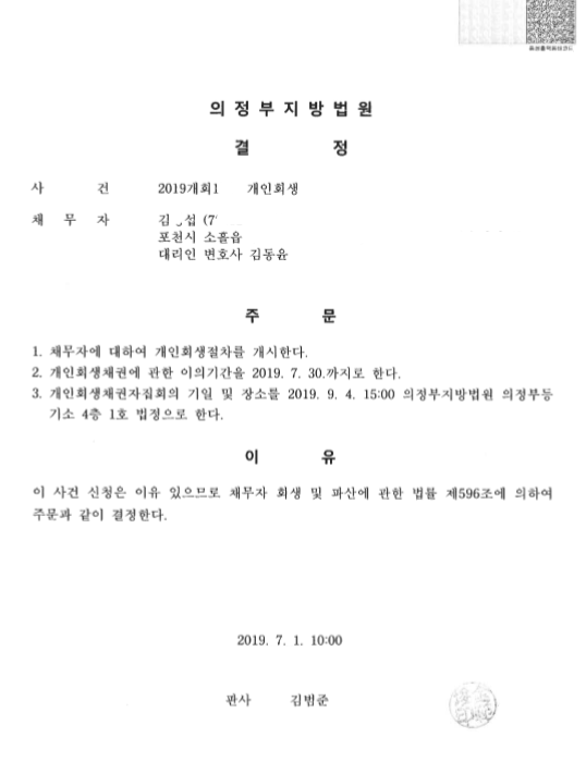 의정부지방법원 (2019개회) 개시결정문 페이지 정보 작성자 김동윤 변호사 작성일19-07-04 14:31 조회7,095회 댓글0건 관련링크 이전글 다음글 목록 본문 의정부지방법원 (2019개회) 개시결정문 댓글목록 등록된 댓글이 없습니다. 이전글 다음글 목록