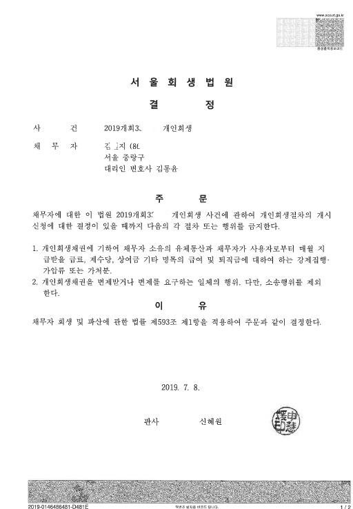 서울회생법원 (2019개회) 금지결정문 페이지 정보 작성자 김동윤 변호사 작성일19-07-11 14:27 조회7,109회 댓글0건 관련링크 이전글 다음글 목록 본문 서울회생법원 (2019개회) 금지결정문 댓글목록 등록된 댓글이 없습니다. 이전글 다음글 목록