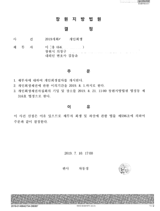 창원지방법원 (2019개회) 개시결정문 페이지 정보 작성자 김동윤 변호사 작성일19-07-15 14:22 조회7,229회 댓글0건 관련링크 이전글 다음글 목록 본문 창원지방법원 (2019개회) 개시결정문 댓글목록 등록된 댓글이 없습니다. 이전글 다음글 목록