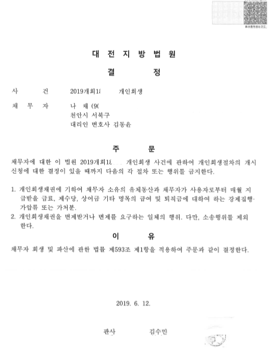 대전지방법원 (2019개회) 금지결정문 페이지 정보 작성자 김동윤 변호사 작성일19-06-17 16:16 조회6,690회 댓글0건 관련링크 이전글 다음글 목록 본문 대전지방법원 (2019개회) 금지결정문 댓글목록 등록된 댓글이 없습니다. 이전글 다음글 목록
