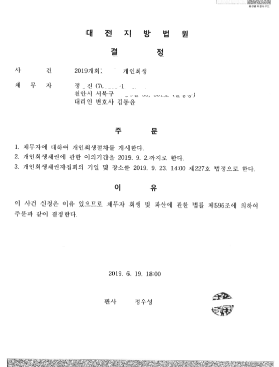 대전지방법원 (2019개회) 개시결정문 페이지 정보 작성자 김동윤 변호사 작성일19-06-24 14:33 조회6,915회 댓글0건 관련링크 이전글 다음글 목록 본문 대전지방법원 (2019개회) 개시결정문 댓글목록 등록된 댓글이 없습니다. 이전글 다음글 목록