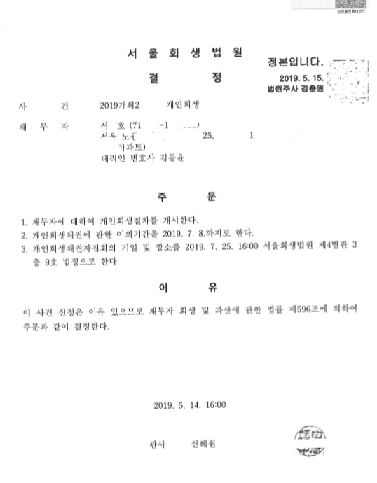 서울회생법원 (2019개회) 개시결정문 페이지 정보 작성자 김동윤 변호사 작성일19-05-20 14:18 조회7,064회 댓글0건 관련링크 이전글 다음글 목록 본문 서울회생법원 (2019개회) 개시결정문 댓글목록 등록된 댓글이 없습니다. 이전글 다음글 목록