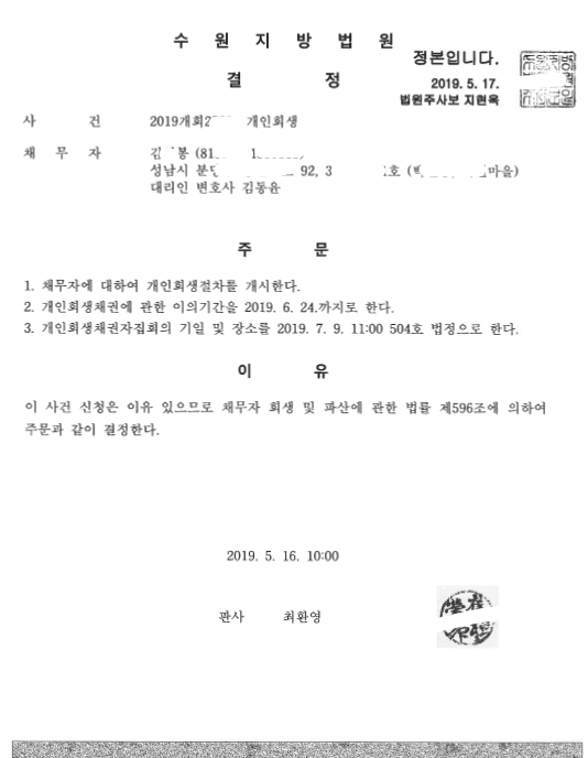 수원지방법원 (2019개회) 개시결정문 페이지 정보 작성자 김동윤 변호사 작성일19-05-22 14:29 조회6,939회 댓글0건 관련링크 이전글 다음글 목록 본문 수원지방법원 (2019개회) 개시결정문 댓글목록 등록된 댓글이 없습니다. 이전글 다음글 목록
