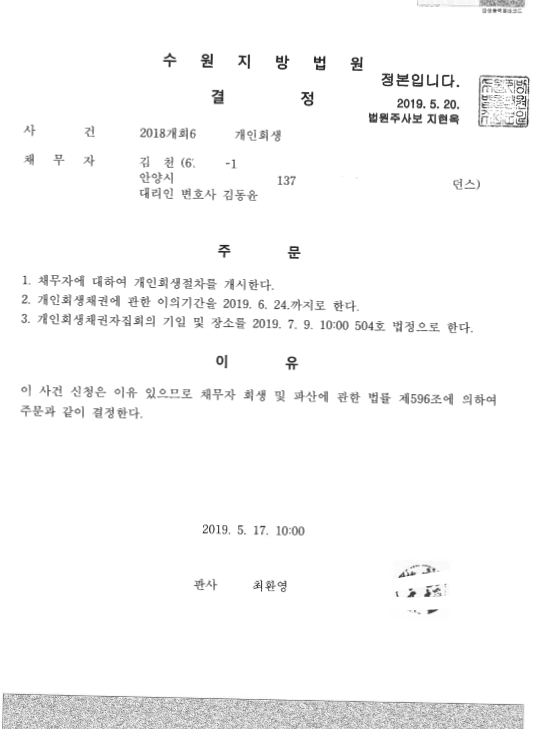 수원지방법원 (2018개회) 개시결정문 페이지 정보 작성자 김동윤 변호사 작성일19-05-23 14:55 조회6,894회 댓글0건 관련링크 이전글 다음글 목록 본문 수원지방법원 (2018개회) 개시결정문 댓글목록 등록된 댓글이 없습니다. 이전글 다음글 목록