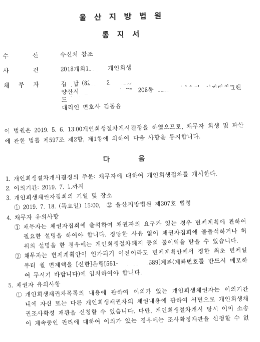 울산지방법원 (2018개회) 개시결정문 페이지 정보 작성자 김동윤 변호사 작성일19-05-09 14:53 조회6,986회 댓글0건 관련링크 이전글 다음글 목록 본문 울산지방법원 (2018개회) 개시결정문 댓글목록 등록된 댓글이 없습니다. 이전글 다음글 목록