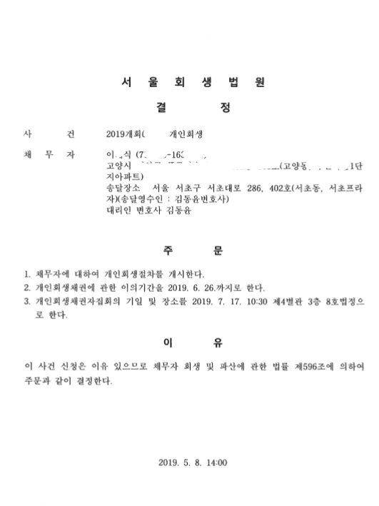 서울회생법원 (2019개회) 개시결정문 페이지 정보 작성자 김동윤 변호사 작성일19-05-14 15:54 조회6,857회 댓글0건 관련링크 이전글 다음글 목록 본문 서울회생법원 (2019개회) 개시결정문 댓글목록 등록된 댓글이 없습니다. 이전글 다음글 목록