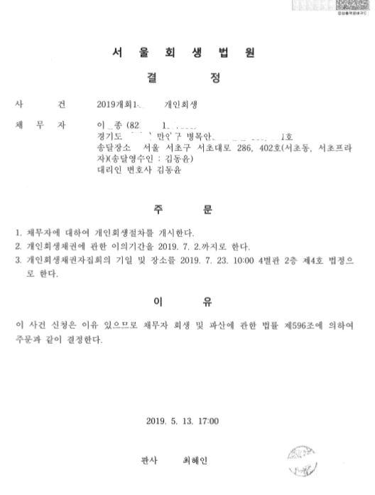 서울회생법원 (2019개회) 개시결정문 페이지 정보 작성자 김동윤 변호사 작성일19-05-16 14:32 조회6,877회 댓글0건 관련링크 이전글 다음글 목록 본문 서울회생법원 (2019개회) 개시결정문 댓글목록 등록된 댓글이 없습니다. 이전글 다음글 목록