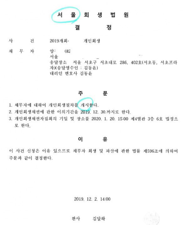 [ 53% 탕감 ] 개시결정 (서울) 페이지 정보 작성자 김동윤 변호사 작성일19-12-09 13:55 조회6,828회 댓글0건 관련링크 이전글 다음글 목록 본문 실제 회생결정문 댓글목록 등록된 댓글이 없습니다. 이전글 다음글 목록