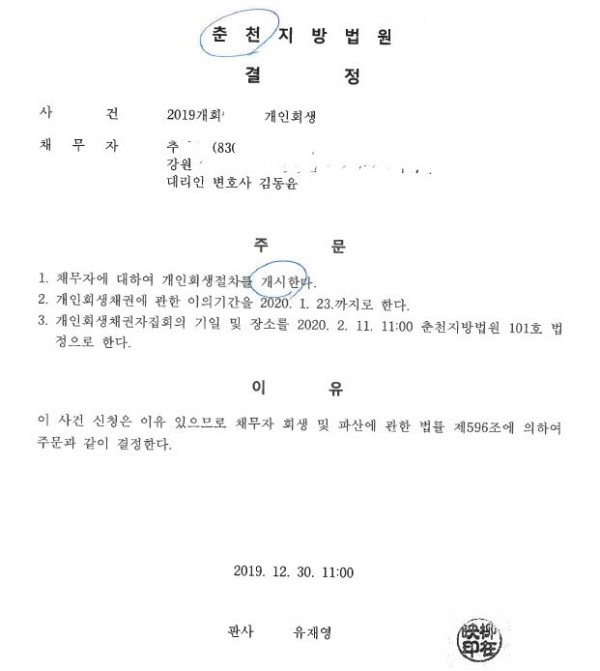[ 39% 탕감 ] 개시결정 (춘천) 페이지 정보 작성자 김동윤 변호사 작성일20-01-06 12:36 조회7,125회 댓글0건 관련링크 이전글 다음글 목록 본문 실제 개시결정문 댓글목록 등록된 댓글이 없습니다. 이전글 다음글 목록