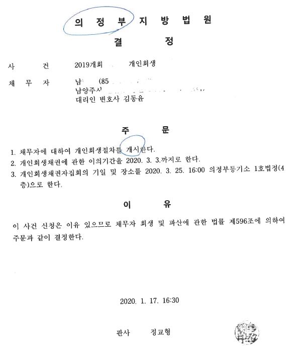 [ 20% 탕감 ] 개시결정 (의정부) 페이지 정보 작성자 김동윤 변호사 작성일20-01-29 18:56 조회7,142회 댓글0건 관련링크 이전글 다음글 목록 본문 실제 개시결정문 댓글목록 등록된 댓글이 없습니다. 이전글 다음글 목록