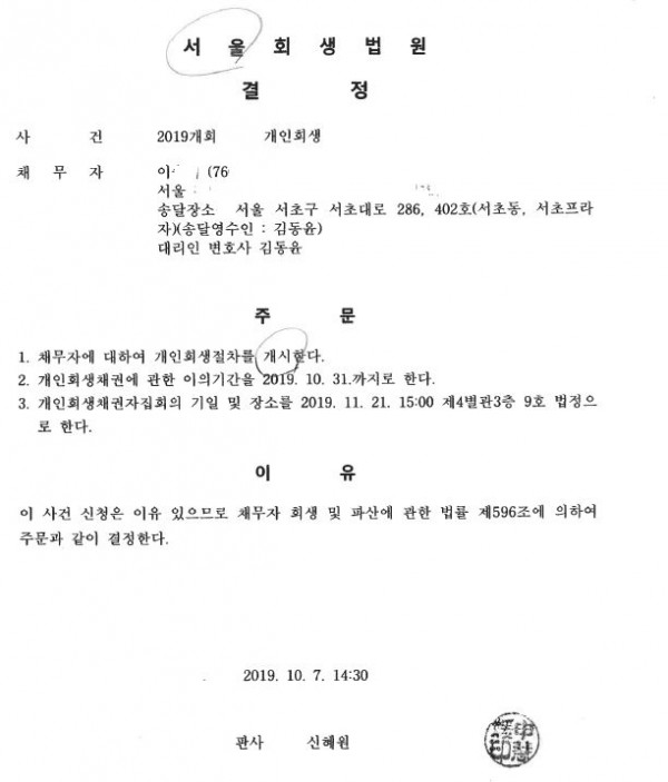 - 남편이 경제능력이 없어, 신청인이 2자녀를 홀로 키우느라 생활비·교육비를 혼자 부담하여 왔고, 그 과정에서 채무 발생
