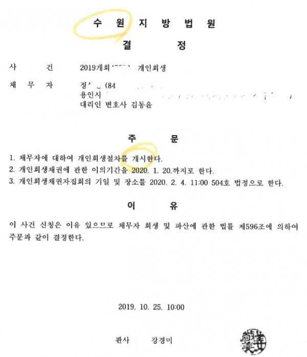 [ 접수 후 단 45일만에 60% 탕감 ] 개시결정 (수원) 페이지 정보 작성자 김동윤 변호사 작성일19-10-30 00:08 조회7,032회 댓글0건 관련링크 이전글 다음글 목록 본문 실제 개시결정문 댓글목록 등록된 댓글이 없습니다. 이전글 다음글 목록