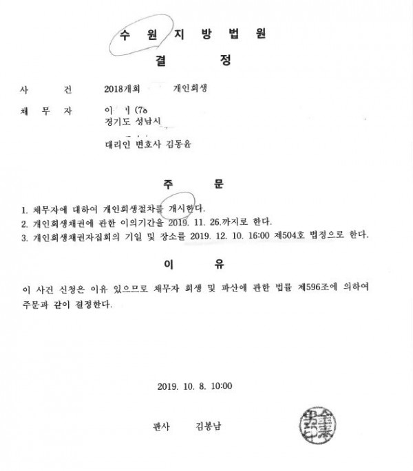 [ 59% 탕감 / 온라인매장 실패로 인한 채무 ] 개시결정 (수원)