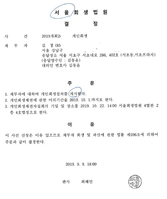 개인회생절차 개시결정문 (서울) 페이지 정보 작성자 김동윤 변호사 작성일19-09-17 16:42 조회7,258회 댓글0건 관련링크 이전글 다음글 목록 본문 서울회생법원 개인회생절차 개시결정문 댓글목록 등록된 댓글이 없습니다. 이전글 다음글 목록