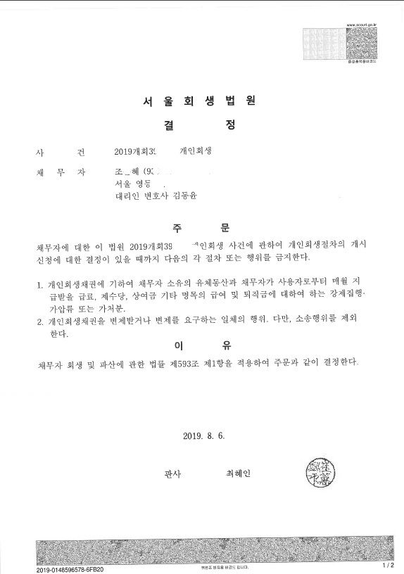 서울회생법원 (2019개회) 금지결정문 페이지 정보 작성자 김동윤 변호사 작성일19-08-13 14:16 조회7,243회 댓글0건 관련링크 이전글 다음글 목록 본문 서울회생법원 (2019개회) 금지결정문 댓글목록 등록된 댓글이 없습니다. 이전글 다음글 목록