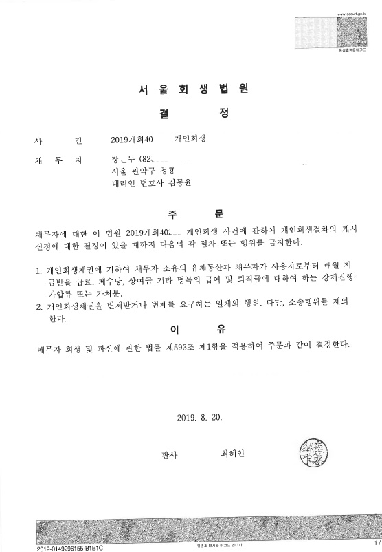 서울회생법원 (2019개회) 금지결정문 페이지 정보 작성자 김동윤 변호사 작성일19-08-23 13:52 조회7,253회 댓글0건 관련링크 이전글 다음글 목록 본문 서울회생법원 (2019개회) 금지결정문 댓글목록 등록된 댓글이 없습니다. 이전글 다음글 목록