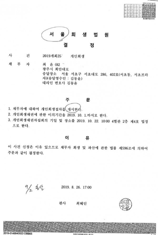 개인회생절차 개시결정문 (서울) 페이지 정보 작성자 김동윤 변호사 작성일19-09-03 15:52 조회7,300회 댓글0건 관련링크 이전글 다음글 목록 본문 서울회생법원 개인회생절차 개시결정문 댓글목록 등록된 댓글이 없습니다. 이전글 다음글 목록