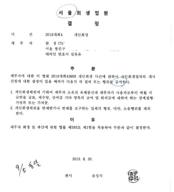 개인회생 금지결정문 (서울) 페이지 정보 작성자 김동윤 변호사 작성일19-09-05 17:04 조회7,149회 댓글0건 관련링크 이전글 다음글 목록 본문 서울회생법원 개인회생절차 금지결정문 댓글목록 등록된 댓글이 없습니다. 이전글 다음글 목록